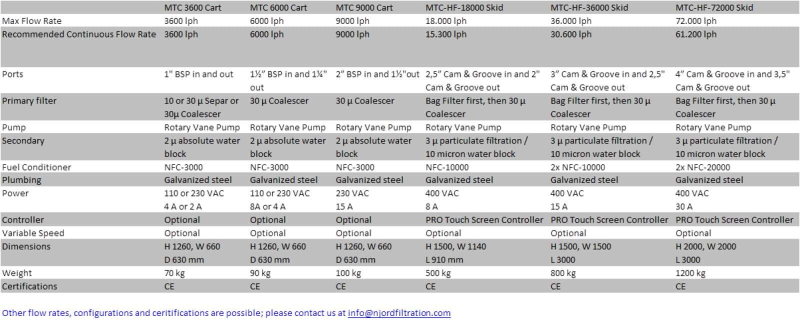 Om de brandstof binnen de door de motorfabrikanten opgestelde specificatie te brengen en houden, is het van belang het watergehalte in de diesel onder de 70 ppm te houden zodat micro-organisme niet kan leven en minstens een 18-16-13 ISO 4406:1999 deeltjesgrootteverdeling te bereiken. Multi-pass filtratie met waterabsorptie en absolute filterelementen < 5 micron is hiervoor noodzakelijk. Dit wordt gerealiseerd met de Njord Mobiele Polishing Systemen die parallel aan de tank staan opgesteld om zo de tank te spoelen.